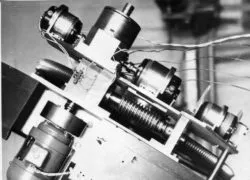 Я никак не мог представить, почему конструкция разгрузки инструмента выполнена так сложно. Тогда мы сами уже спроектировали систему разгрузки классического типа с верхним расположением, с противовесами на большом пассажном инструменте для Чили. Инструмент приподнимался над лагерами с определенным усилием, цапфы давили на лагеры с заданным усилием, была сделана система отсчета круга и т. д. И у меня возникла мысль сделать эти лагеры для хороших цапф гидростатическими. В то время уже широко применялись гидростатические опоры для станков высокого класса точности с впрыскиванием масла под давлением в зазор между валом и его опорой. При этом, несмотря на большие усилия, выдерживается высокая точность вращения при низком трении. А. А. Немиро оценил эту идею, и мы приступили к ее осуществлению. Конечно, поверить в это было очень трудно. Астрономы говорили: «Ну что вы, разве можно? Триста с лишним лет все работают с лагерами, которые просто представляют собой две точки опоры под этими цапфами, это такая точная работа, там мы ловим десятые микрона, а вы тут будете на жидкости всё делать!»