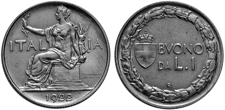 Удивительная история произошла с итальянскими алюминиевыми монетами. (Строго говоря, их чеканили не из чистого алюминия, а из сплава italma — от «Италия», «алюминий» и «магний», но алюминия в этом сплаве 96,2%, а магния — только 3,5%, и 0,3% марганца.) Из этого справа в послевоенной Итальянской Республике чеканились монеты самых мелких номиналов: 1, 2, 5 и 10 лир. Как говорилось в первой статье про монеты из золота, серебра и меди, цена металла в монете когда-то соответствовала номиналу. Известна так называемая порча монеты, когда правители злостно снижали пробу драгоценного металла. Но история знает и прямо противоположные случаи, когда стоимость металла превышала номинал монеты. Как правило, это связано с инфляцией и неповоротливостью чиновников, не прекращающих своевременно чеканить монеты, как говорится, себе в убыток. В Италии в 1970-е годы ХХ века возникла острая нехватка разменной монеты — из обращения почти исчезли самые мелкие номиналы. Оказалось, что некоторые фирмы скупали эти дешевые монеты, металл которых стоил больше номинала, и использовали их в различных целях, например в качестве основы для пуговиц, — это было дешевле, чем штамповать кружки даже из недорогого алюминия. В результате итальянское правительство приняло срочные меры по массовой чеканке мелких монет. Так, если в 1970 году пятилировых монет было отчеканено 3,1 млн, то в 1972-м — уже 16,4 млн, а в 1973-м — 28,8 млн! И хотя еще в 1976 году лира соответствовала всего 0,0012 долл. США, т. е. на нее ничего нельзя было купить, массовая чеканка мелких монет продолжалась почти до перехода на евро в 2002 году. Как бы в насмешку на монете достоинством одна лира был изображен рог изобилия. Справедливости ради следует сказать, что тиражи алюминиевых монет в конце ХХ — начале XXI века, конечно, были скромные. Так, в 2001-м было отчеканено всего 110 тыс. пятилировых монет, но не для обращения, а для коллекционеров — улучшенного качества.