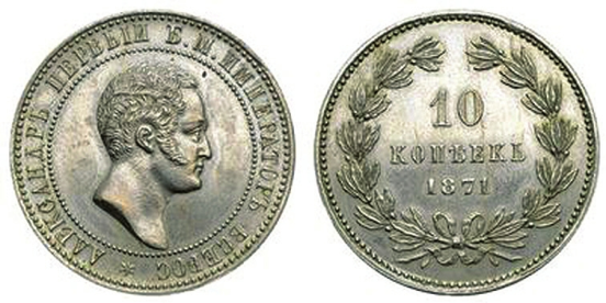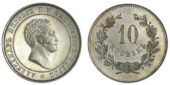 В Российской империи за чеканку никелевой монеты выступал известный физик, открывший гальванопластику, академик Борис Якоби. Он представлял Россию в международной комиссии для выработки общих единиц мер, весов и монет. По его просьбе в 1871 году на Брюссельском монетном дворе были отчеканены пробные образцы предлагаемых монет. Однако в Министерстве финансов это предложение отклонили, как и последующие, поступавшие из Англии, Франции и Германии. В начале ХХ века в России были обнаружены богатые никелевые руды, и предложение начать чеканку никелевых монет поступило в 1911-м теперь уже от Петербургского монетного двора. Но начавшаяся вскоре война похоронила и эту инициативу. Монеты из медно-никелевого сплава начали чеканить в СССР только в 1931 году. Состав сплава изменился с изменением дизайна советских монет в 1961-м. Так, анализ сплава 20-копеечной монеты 1978 года показал, что он содержит 52,77% меди, 31,72% цинка, 11,40% никеля, 3,85% марганца и 0,26% железа.