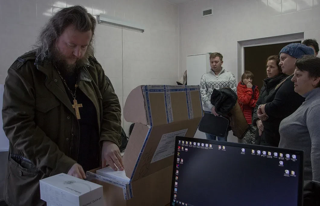 Это вот отец Дионисий. Третьего дня он вошел в больницу города, близ которого живет, с расходниками для инсулиновых помп, которые купил на свои, чтобы раздать родителям, чьи дети больны диабетом, потому что иные из них не получают положенные бесплатно канюли и катетеры с октября 2017 года.