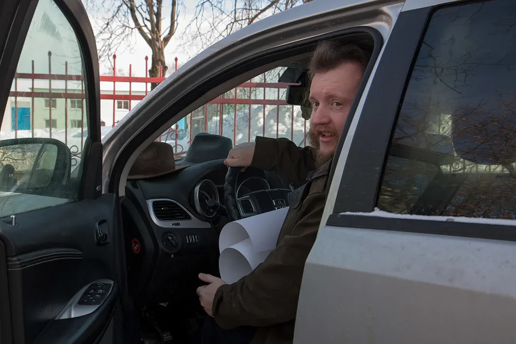 Отец Дионисий — в миру Денис Соколов — встретил нас на безлюдной ж/д станции. Вид у него что ни на есть дионисийский. Можно запросто представить его в гиматии и с наполненным канфаром. Но был он в распахнутой куртке поверх синего подрясника, ниже которого выглядывали спортивные штаны с лампасами. Сказал: «Я так понимаю, что вы — это вы, а я — это я». И пригласил в автомобиль «Додж» модели «Джорни». «Путешествие» то есть.
