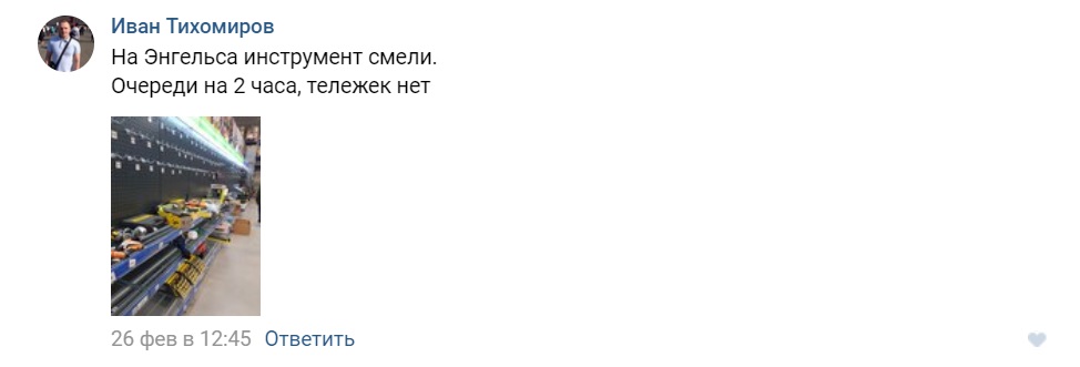 Очевидцы пишут, что в магазинах не хватает тележек. Прилавки пустые, а товары отрывают прямо со стендов.