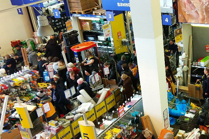 Строительные магазины «К-раута» закрываются и распродают товары со скидкой 40 %. В гипермаркетах гигантские очереди, а в одном из магазинов покупатели подрались, не поделив товар.