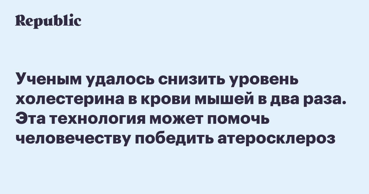 Ученым удалось снизить уровень холестерина в крови мышей в два раза. Эта технология может помочь человечеству победить атеросклероз