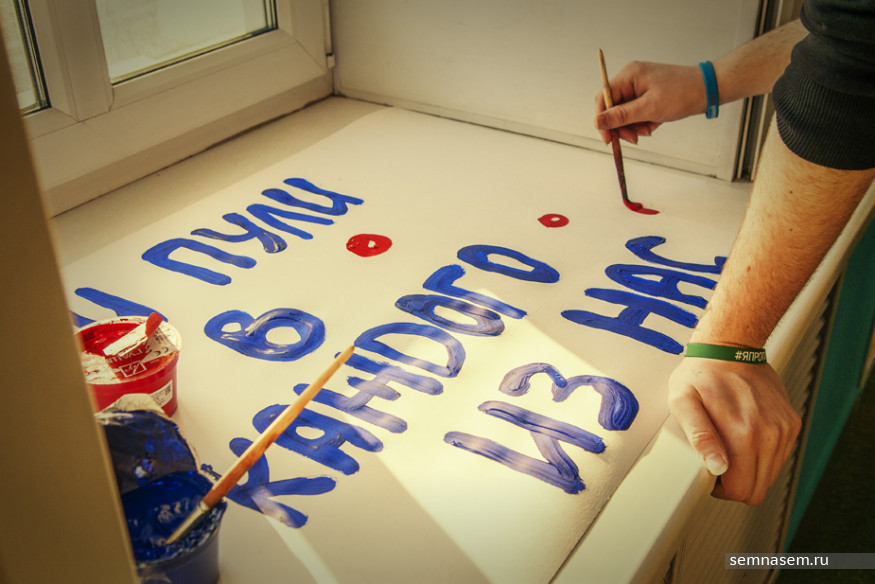 Заместитель координатора штаба Навального Александр Зыков, стоял с плакатом у входа в костромскую мэрию.