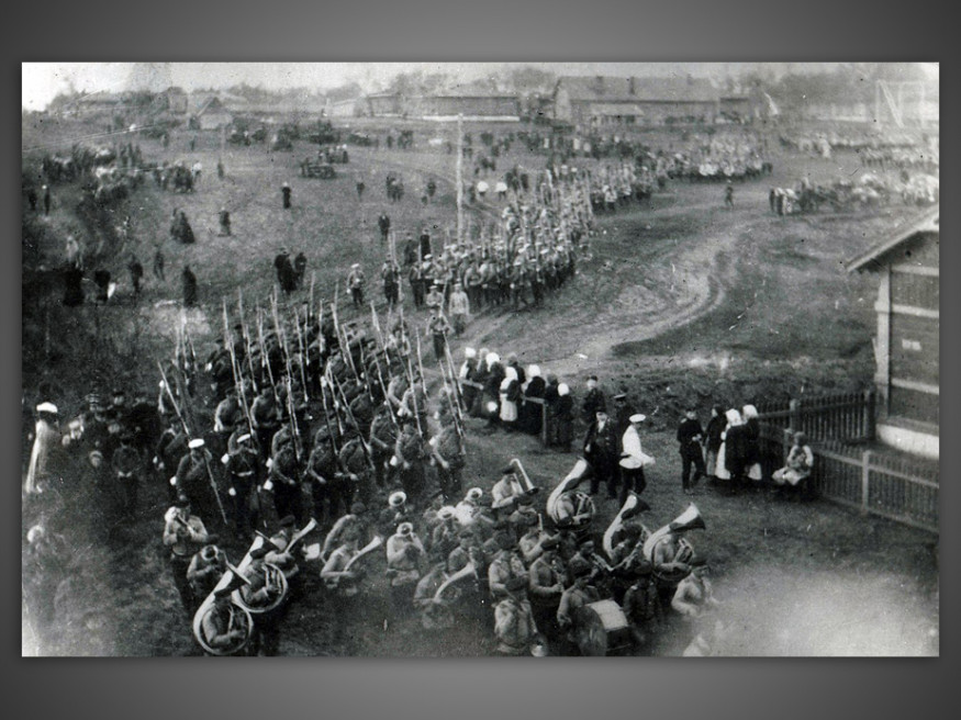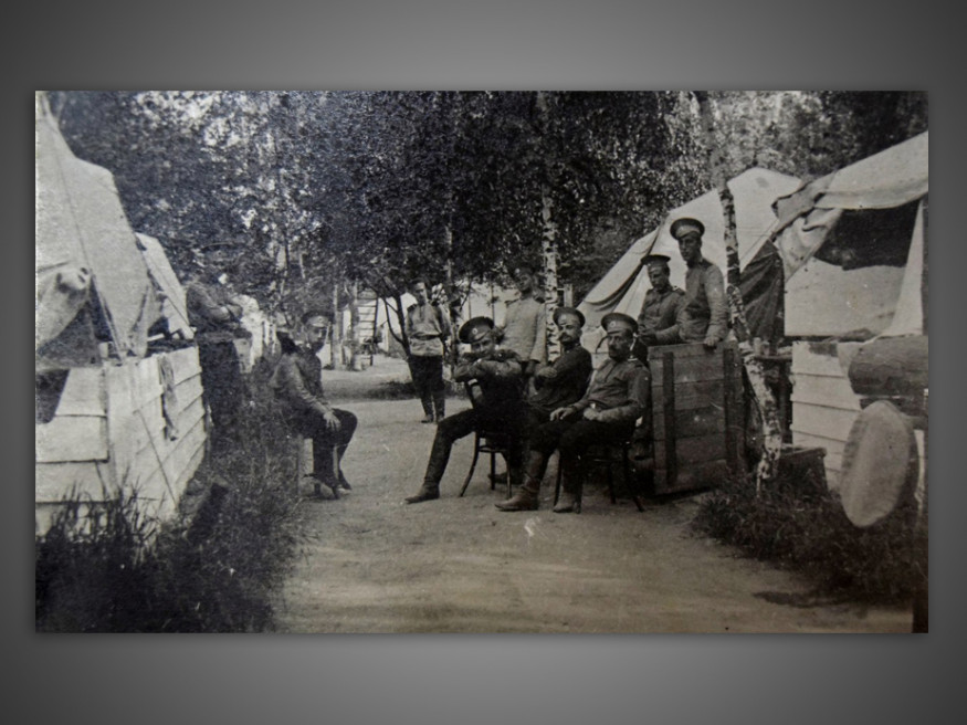 Серегин основательно подготовился к встрече и захватил с собой старые фотографии, на которых запечатлен композитор возле старого дома. За его спиной — здание казармы постройки 1910 года. Нашел и фотоснимки полка. В каком году они были сделаны и кем — не знает, потому что их «просто находят в семейных архивах и приносят скопинцы».