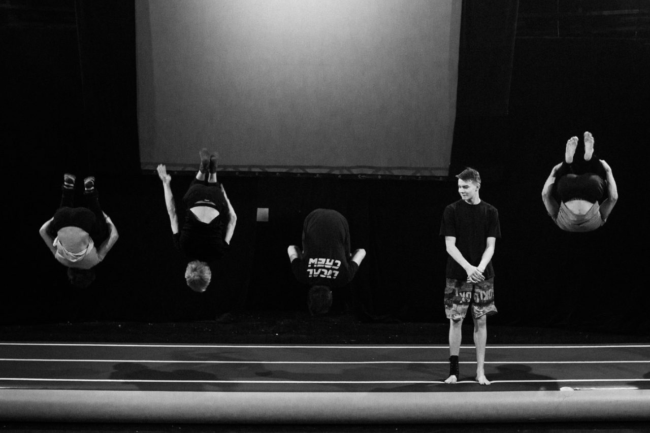 Из-за перенесенной травмы Игорь еще не может выполнять все упражненияФото: Екатерина Резвая для ТД Игорь на костылях научился кувыркаться с приземлением на здоровую ногу, и, исследовав возможности этого медицинского аксессуара, ребята придумали несколько основ для акробатических номеров, которые они надеются вставить когда-нибудь в свою программу. Их тренировки продолжались несколько месяцев, и это, пожалуй, было единственное, что не позволяло Игорю сойти с ума от вынужденной изоляции.