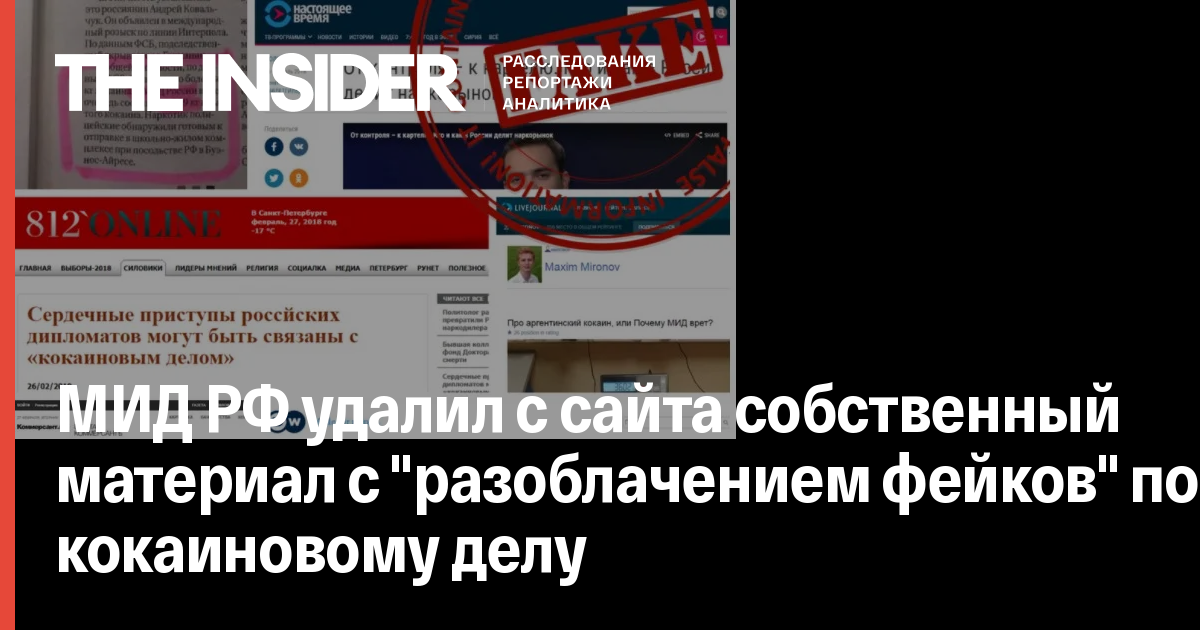 Министерство иностранных дел РФ без объяснения причин удалило с официального сайта материал, в котором «опровергались получившие широкое распространение фейковые утверждения» по делу о попытке поставки аргентинского кокаина в Москву. Публикация сохранилась в кэше Google.