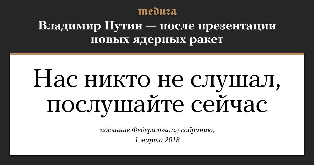 Владимир Путин представил новые ядерные ракеты, после чего пригрозил миру. Цитата