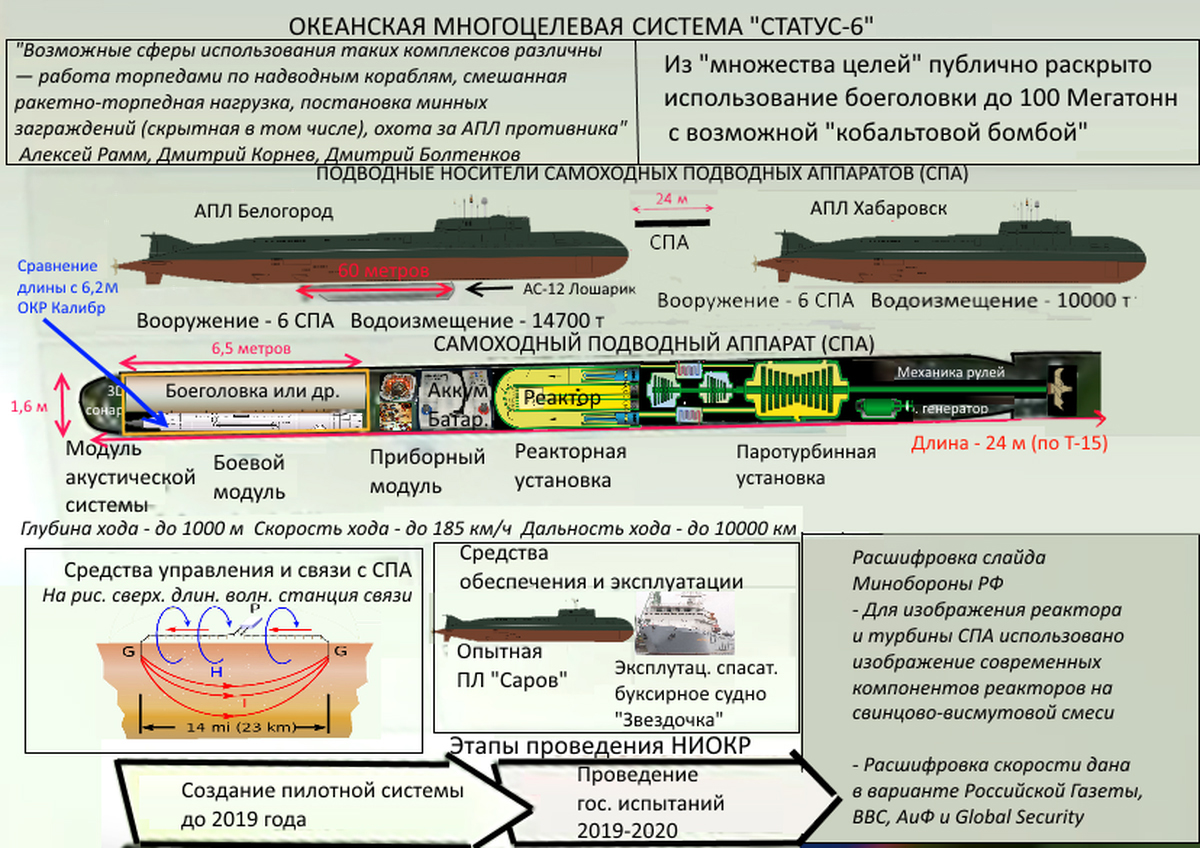 Речь идет о некоем «оружии Судного дня». Подводный аппарат должен быть запущен в момент ядерного удара по России и предназначен для уничтожения Западного и Восточного побережья США. Что весьма ясно демонстрировало (и демонстрирует) образ мыслей Владимира Путина и его подчиненных