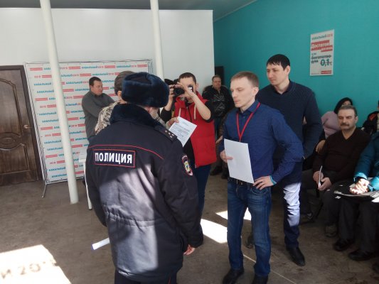 В офисе присутствуют представители международной организации ОБСЕ. Мурыгина, возможно, обвиняют в неуплате штрафа (часть 1 статьи 20.25 КоАП). Несмотря на то, что он показал протокол судебного пристава, полицейские, угрожая применить физическую силу и спецсредства, заставили его поехать в отдел полиции по Фрунзенскому району Саратова. Известно, что сейчас Михаила Мурыгина везут в суд.