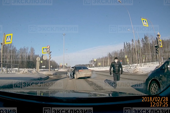 Женщина рассказала полицейским, что днем 28 февраля на Парашютной улице в поселке Парголово за ее «Ауди» гнались неизвестные. Когда машина остановилась на светофоре, из черного автомобиля выбежали двое мужчин в масках. Один из них прокол ей колесо, а второй стал стрелять по стеклам. Сайт 78.ru опубликовал запись видеорегистратора.