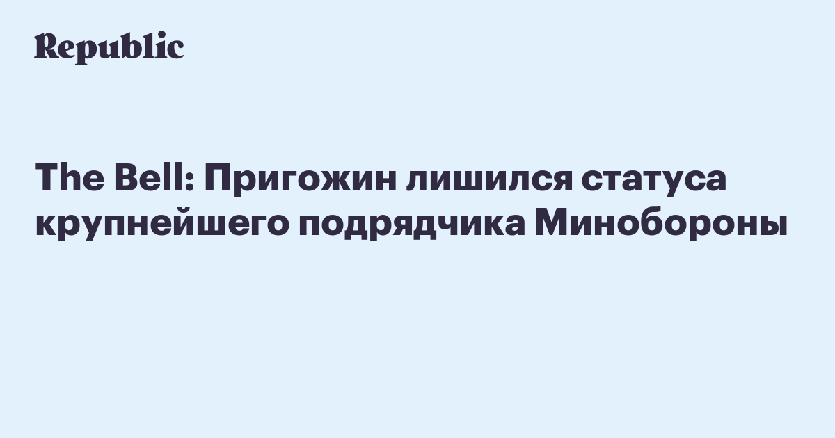 The Bell: Пригожин лишился статуса крупнейшего подрядчика Минобороны