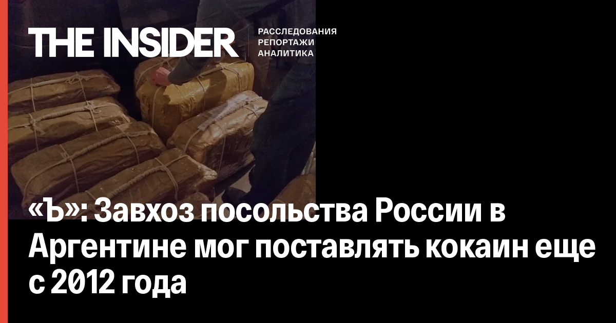 «Ъ»: Завхоз посольства России в Аргентине мог поставлять кокаин еще с 2012 года