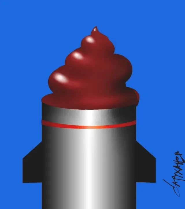 — А вот еще образчик свежий. Она взлетит из-под воды — и нет обоих побережий: Сиэтла, Мэна и ты ды. Она коллайдер ваш адронный легко отправит на покой: в ней вставлен двигатель ядреный, конкретно ядерный такой. Она, из шахты выползая, летит на ваши племена. Смотрите: видно?