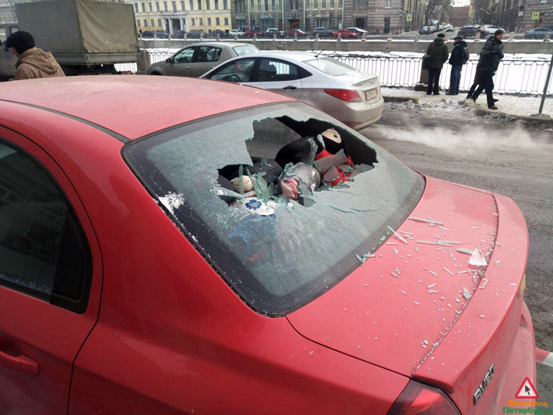 На Фонтанке во время уборки снега разбили стекло автомобиля