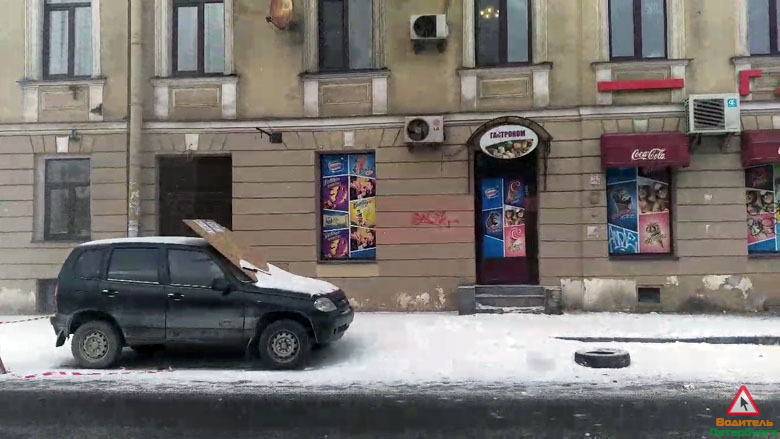 «Еду по Фонтанке и вижу, как с крыши кидают лед. Лед летит и на машины, и на людей. Увидел, что одной машине уже разбили стекло, решил зафиксировать лица исполнителей на всякий случай. Коммунальный работник категорически запретил мне видеосъемку, а когда я всё же попытался его заснять, он набросился на меня с угрозами и выбил камеру из рук».