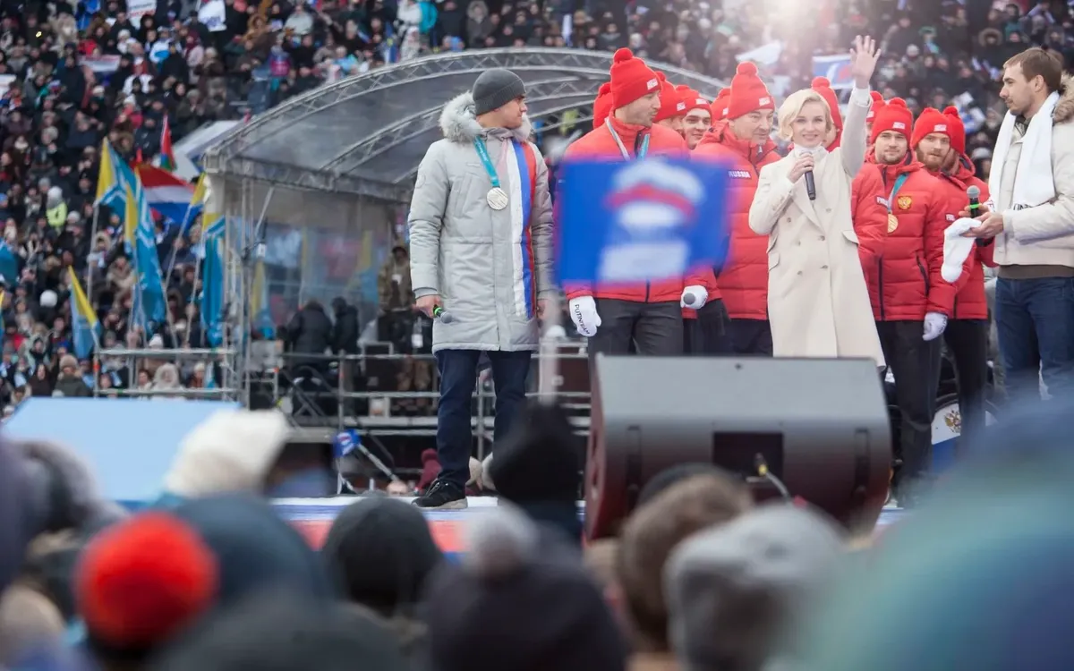 Все, что полагалось сказать медалистам в ответ, они сказали. Этого, однако, показалось мало. Надо было, чтобы герои Олимпиады продемонстрировали и вполне конкретную поддержку действующей власти на грандиозном митинге в преддверии президентских выборов.