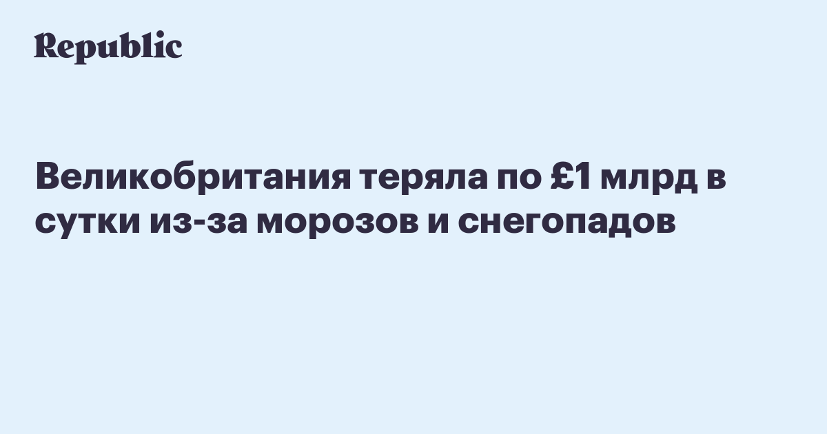 Из-за похолодания и снегопадов экономика Великобритании теряет примерно £1 млрд ($1,38 млрд) в сутки. Об этом пишет The Observer.