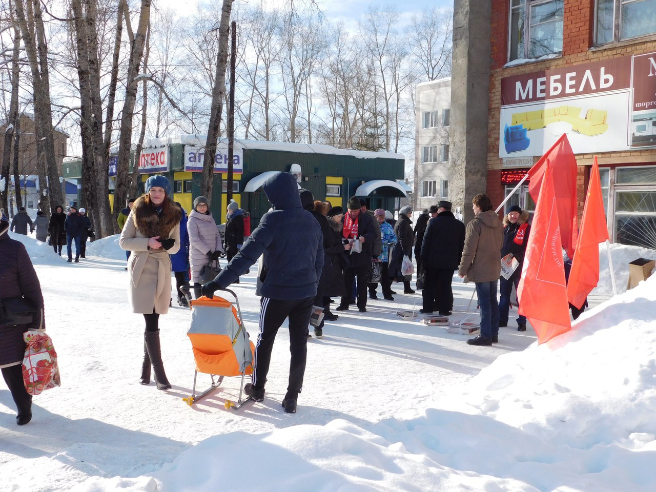 Перед торговым центром собралось около 60 человек, причём 10 из них были сотрудники полиции (примерно такое же количество правоохранителей бывало на митингах в столице Республики Коми).