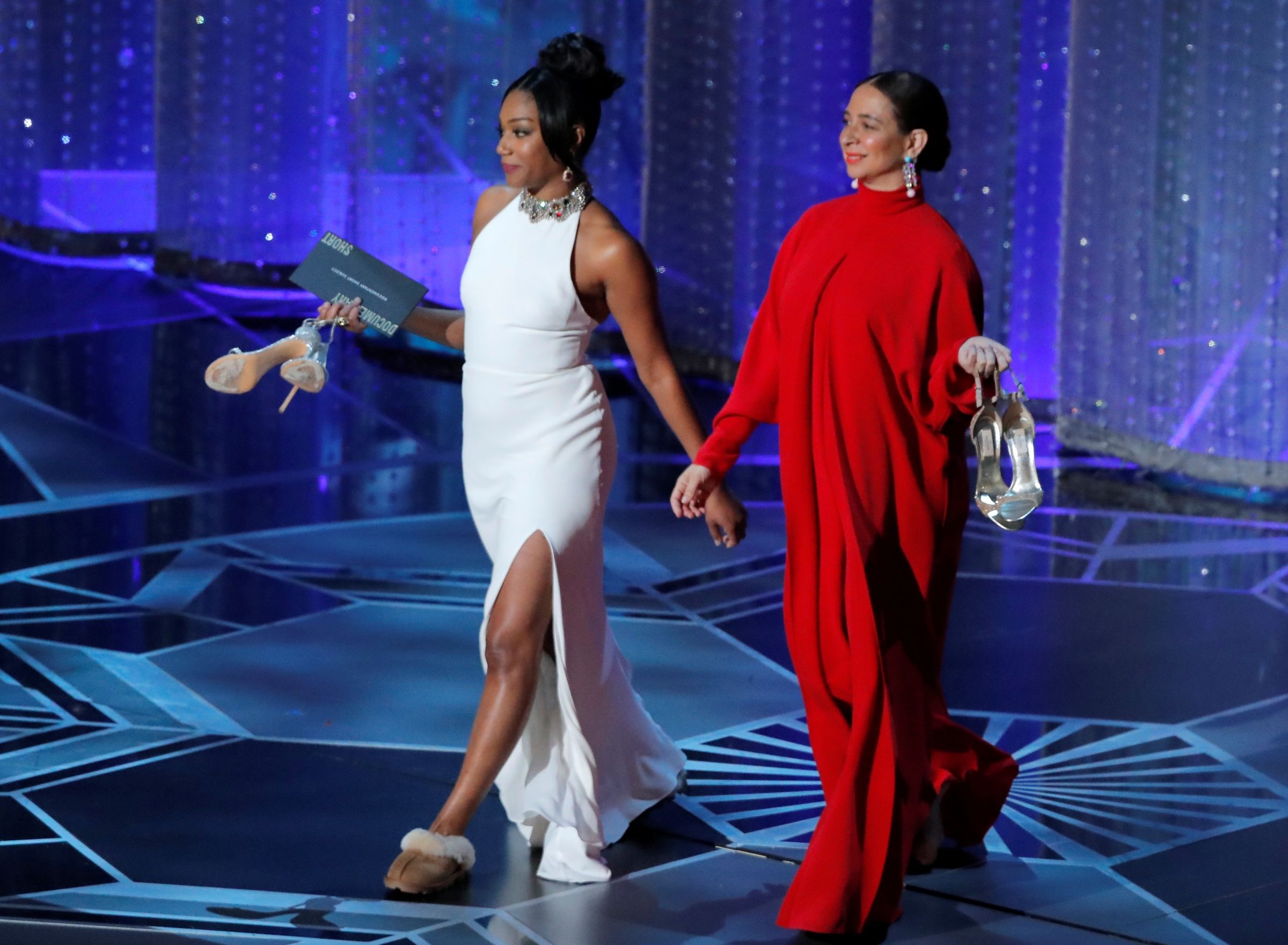 Актрисы Майя Рудольф и Тиффани Хэддиш вышли представлять лучший короткометражный фильм в домашних тапочках, держа в руках босоножки на высоком каблуке. Весь вечер актрисы провели на шпильках и использовали свой выход на сцену, чтобы показать, насколько это неудобно, — и сделать выпад против стандартов красоты и объективации женщин в Голливуде.