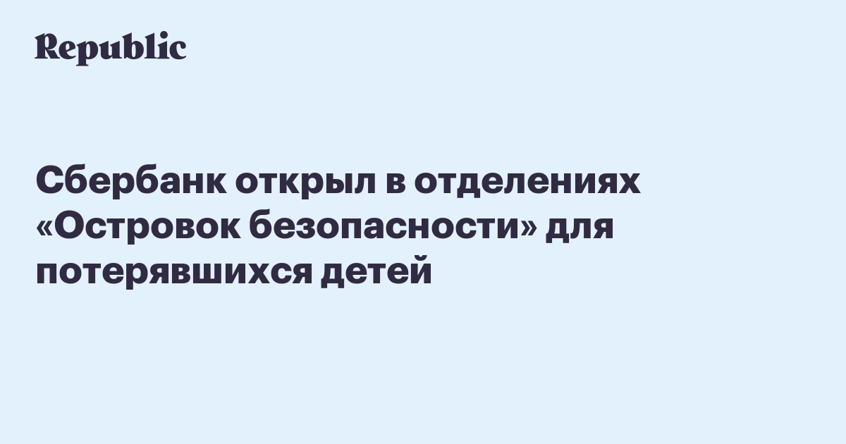 Сбербанк запустил в своих отделениях новый социальный сервис для потерявшихся детей, который называется «Островок безопасности». Об этом говорится в пресс-релизе банка.