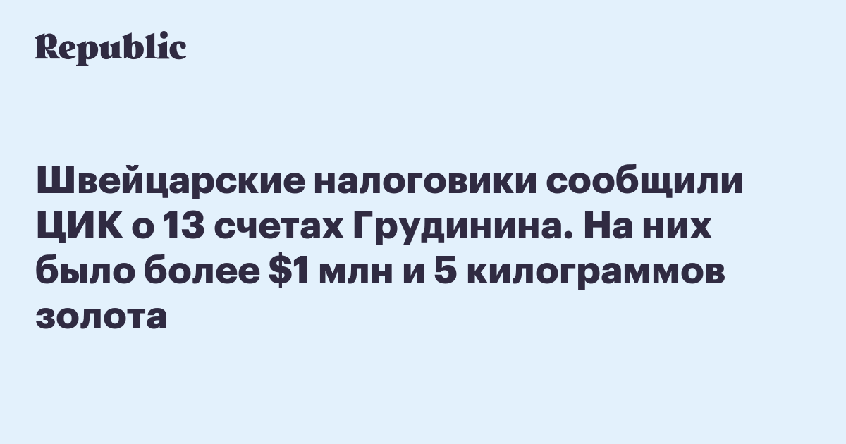 Швейцарские налоговики сообщили ЦИК о 13 счетах Грудинина. На них было более $1 млн и 5 килограммов золота
