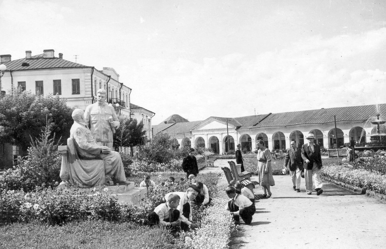 Август 1953 года. Пионеры-юннаты ухаживают за цветником возле памятника Ленину и Сталину на Советской площади. На заднем плане из-за Красных рядов выглядывает обезглавленная и лишённая колокольни церковь Спаса в рядахФото: starina44.ru Если бы костромские избиратели внимательно читали газету «Правда», они отметили бы, что последнее упоминание в ней о Сталине, как о действующем главе государства, относилось к 18 февраля.