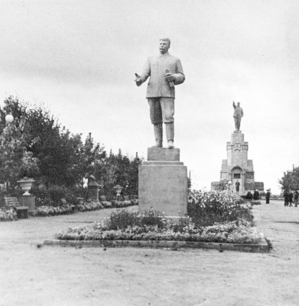 Начало 50-х годов ХХ века. Кострома. Парк культуры и отдыха им. В.И. Ленина. Памятники Сталину и ЛенинуФото: starina44.ru «В Доме отдыха в Лунёве, находившемся в 30-60 годах в ведении Костромского текстильного института … рядом с бывшим помещичьим домом на берегу Волги была установлена большая железобетонная фигура Сталина. В шинели и фуражке, с правой рукой, заложенной за борт шинели, вождь решительно куда-то шагал. Распоряжение убрать этот памятник поступило весной 1962 года. По совпадению обстоятельств, тогда же решилась и судьба жившего при конюшне Дома отдыха козла Фильки, давно уже известного своим антиобщественным поведением. Дождавшись, когда отдыхающие уходили на Волгу, козел шастал по корпусам, лазал по тумбочкам, поедая все съестное, и при этом жутко свинячил. Приученный к выпивке, в состоянии алкогольного опьянения Филька нападал в аллеях парка на женщин, принуждая последних с визгами и криками залезать на деревья. Наконец, после какого-то очередного подобного подвига терпению начальства пришел конец. В. Н. Аносов (профессор Костромского технологического университета, рассказавший эту историю автору книги. — ТД) участвовал в совещании, на котором обсуждались два вопроса: 1) снос памятника Сталину, 2) ликвидация козла Фильки. Оба эти вопроса были решены комплексно. Рядом с памятником выкопали глубокую яму, куда вначале низвергли статую Сталина, а затем туда же бросили и останки козла-пьяницы, которого застрелил кладовщик Дома отдыха. В этой своеобразной братской могиле земля приняла в свое лоно обоих — и бывшего вождя народов, и непутевого Фильку…»