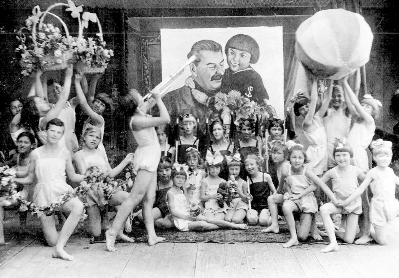 6 мая 1937 года. Музыкальная школа Костромы. Инсценировка «За детство счастливое наше спасибо, родная страна!» Дети обращаются к плакату, на котором Сталин обнимает Гелю (Энгельсину) Маркизову, отец которой через год после встречи с вождём был расстрелян, а мать арестованаФото: starina44.ru Центрами всенародного праздника, в который должны были превратиться выборы, конечно же, стали избирательные участки, и прежде всего избирательный участок № 14 в школе № 17, где и должно было состояться историческое голосование. Свидетельства сохранили описание сказочного убранства: «В зале, где стояли кабины для голосования, был воздвигнут огромный — чуть ли не в натуральную величину — макет Спасской башни Московского Кремля, звезда на шпиле которой упиралась в высокий потолок. Башню обрамлял десяток настоящих больших елей. Стену украшало монументальное панно, изображавшее, как в Волго-Донской канал входит большой красивый теплоход «Иосиф Сталин».