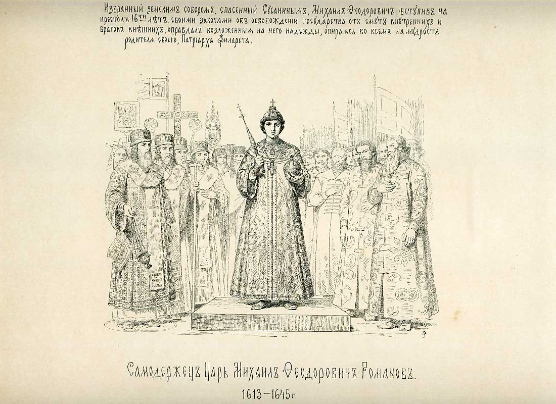 Самодержец Царь Михаил Феодорович Романов. 1613-1645 ггФото: В.П.Верещагина, 1896 г./commons.wikimedia.org Костромские земли и сам город были колыбелью последней правящей династии — отсюда призвали на царство 16-летнего Михаила Федоровича. Здесь в 1913 году был заложен монумент в честь 300-летия дома Романовых. Даже этот памятник стал готовым символом новой преемственности. На постамент, когда-то предназначенный для скульптурной композиции, изображавшей все поколения рода Романовых, в 1928 году был установлен железобетонный памятник Ленину, а вскоре в нише постамента появился большой портрет Сталина. Первоначально в этой нише должны были находиться фигуры Николая II и царевича Алексея.