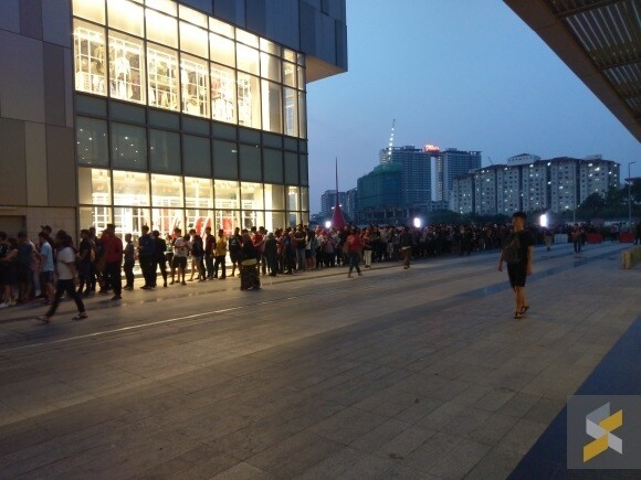 Несмотря на запрет «полуночной очереди», покупатели начали собираться возле него за 19 часов до открытия. Всего к началу рабочего дня в очереди стояли больше 11 тысяч человек, которые протягивалась до выхода в торговый центр и несколько раз обвивала здание по улице.