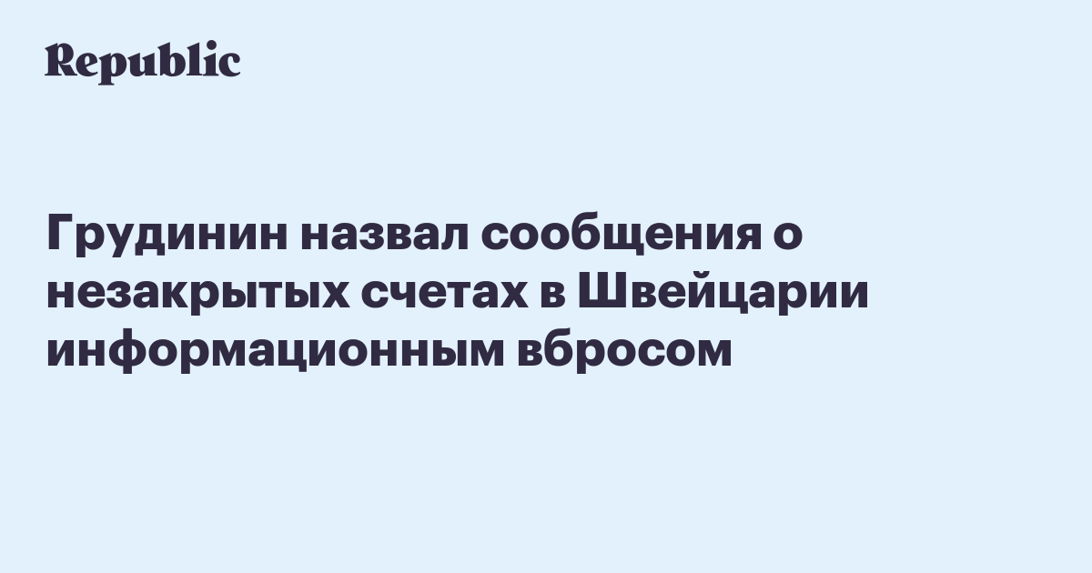 Кандидат в президенты России Павел Грудинин назвал информационным вбросом публикации в СМИ о том, что у него на момент выдвижения имелись незакрытые счета в швейцарском банке. Об этом написал в фейсбуке.