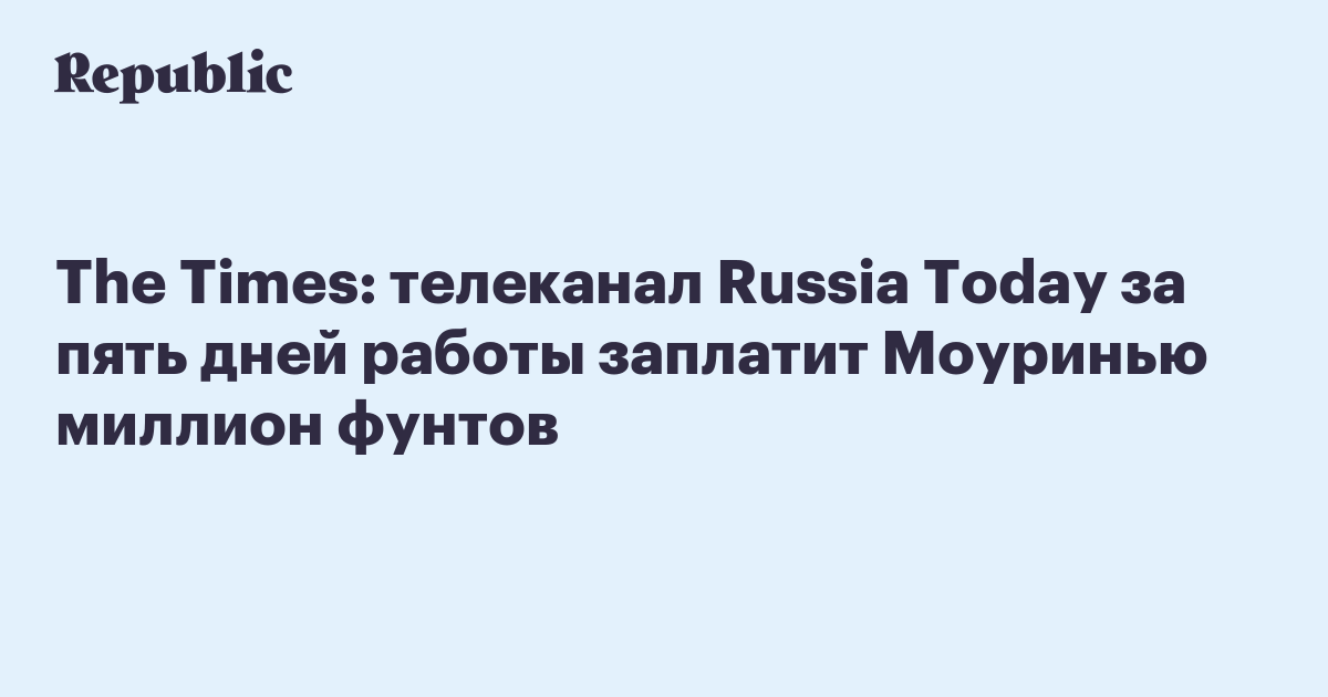 Футбольный тренер Жозе Моуринью за пять дней работы с телеканалом Russia Today получит гонорар, превышающий £1 млн. Об этом узнала газета The Times.