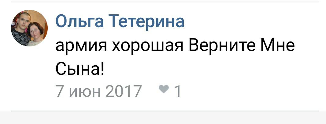 Сейчас дело передано в Гарнизонный суд. Вердикт – доведение до самоубийства. Пока обвиняемый один – Усуб Аджоян, хотя тех, которые в страхе держали всю часть, было трое. Ольга Тетерина собирается дождаться суда и расследовать, что произошло на самом деле дальше.