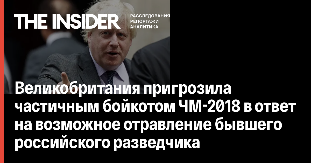 Великобритания может частично бойкотировать проведение чемпионата мира по футболу 2018 года, если будет доказана причастность России к отравлению бывшего разведчика Сергея Скрипаля. Об этом заявил британский министр иностранных дел Борис Джонсон, передает ВВС.