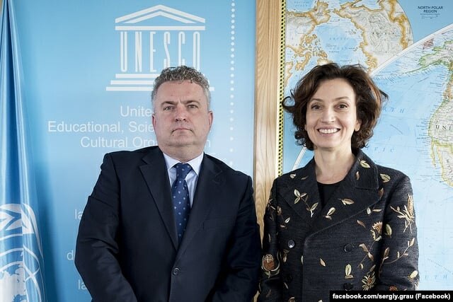 Заместитель министра иностранных дел Украины Сергей Кислица сообщает, что в рамках своего визита в Париж встретился с генеральным директором ЮНЕСКО Одри Азуле, с которой обсудил «ключевые темы сотрудничества» с организацией.