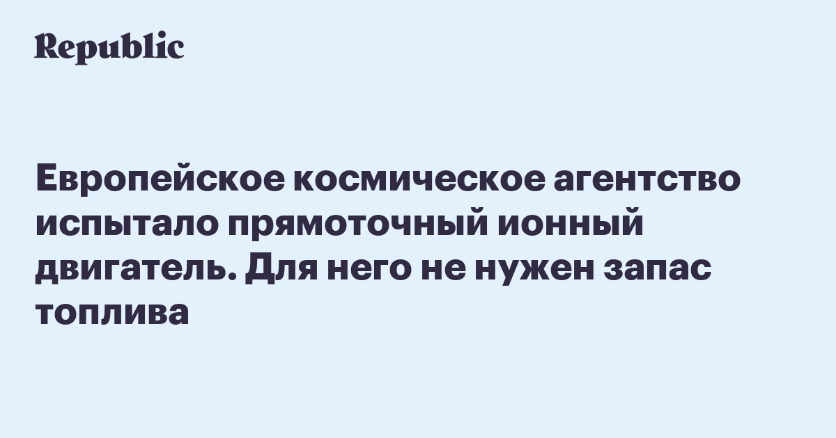 Европейское космическое агентство испытало прямоточный ионный двигатель. Для него не нужен запас топлива