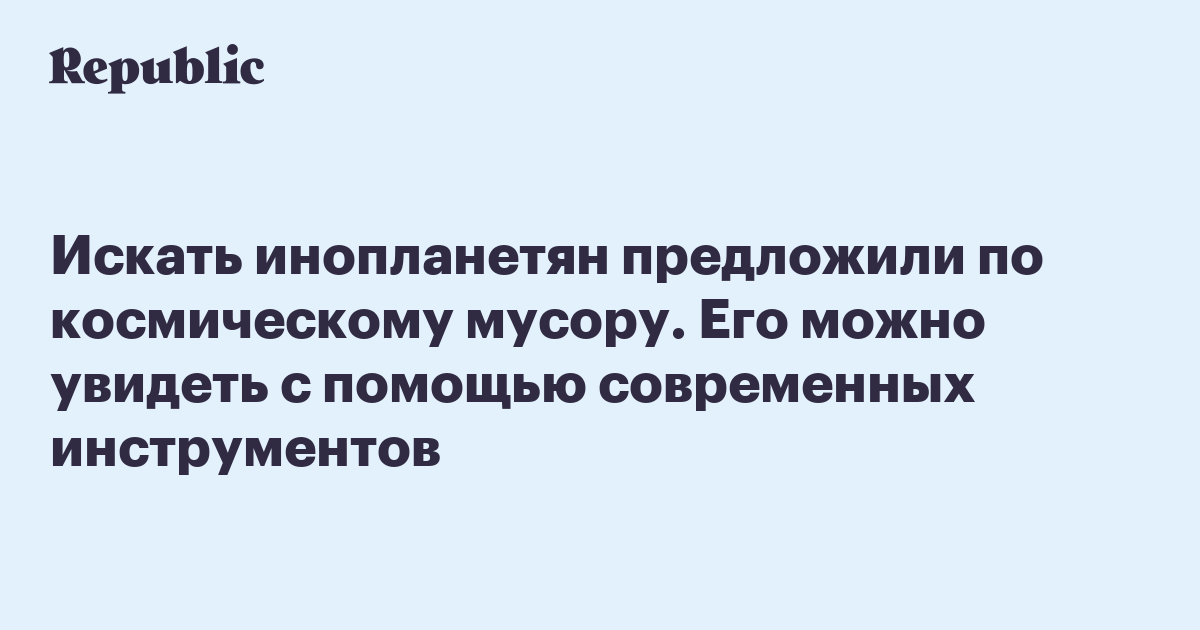 Поиск внеземных цивилизаций можно проводить с помощью поиска космического мусора, окружающего планеты, где эти цивилизации находятся. Такой способ описал испанский астроном Гектор Сокас-Наварро. О статье, которая принята к публикации в Astrophysical Journal, рассказывает New Scientist.