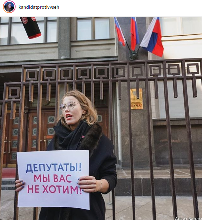 8 марта активисты поочередно выходили к зданию Государственной думы РФ с одиночными пикетами, требуя расследовать факты сексуальных домогательств со стороны депутата от ЛДПР, главы комитета по международным делам Леонида Слуцкого.
