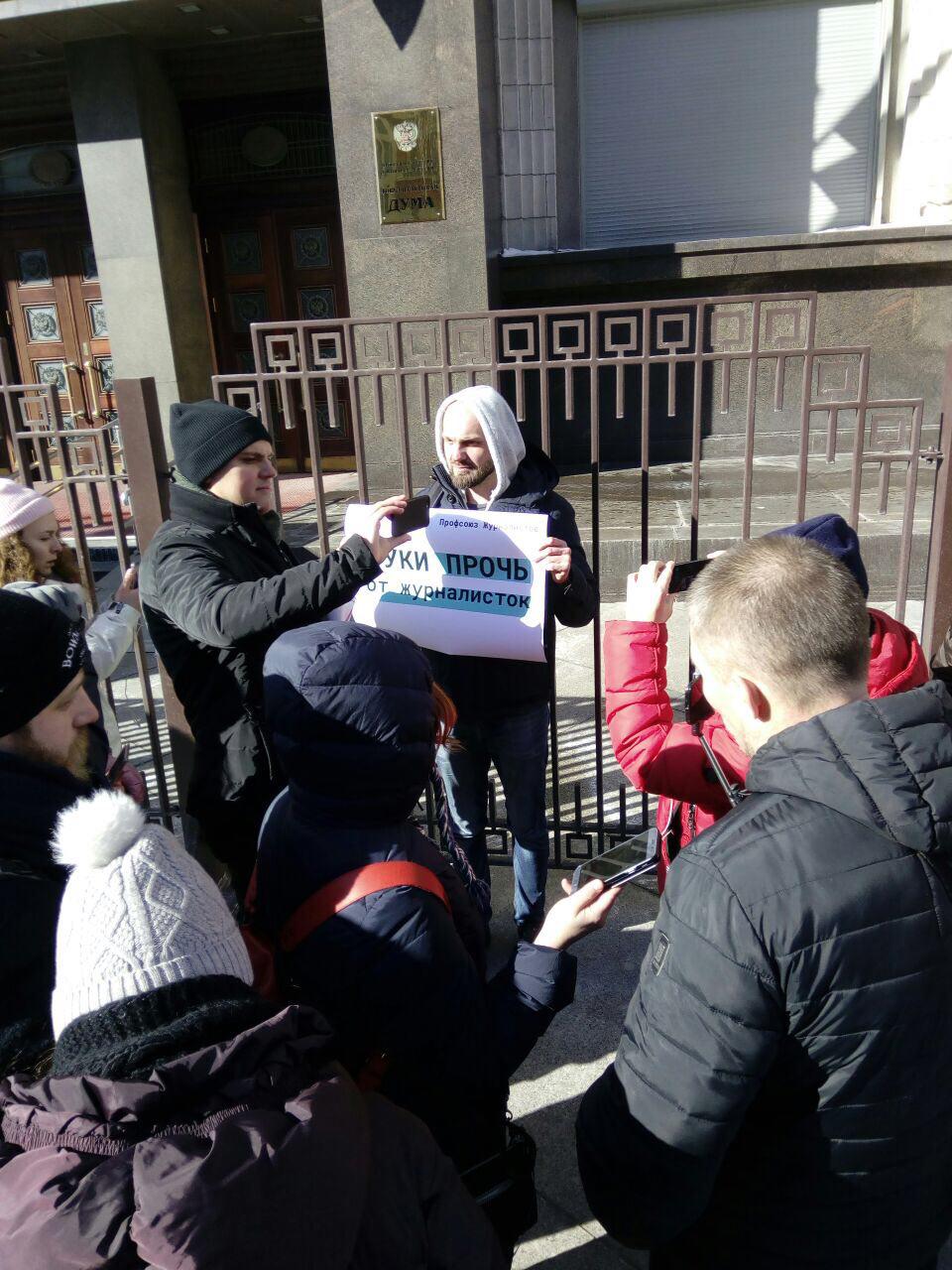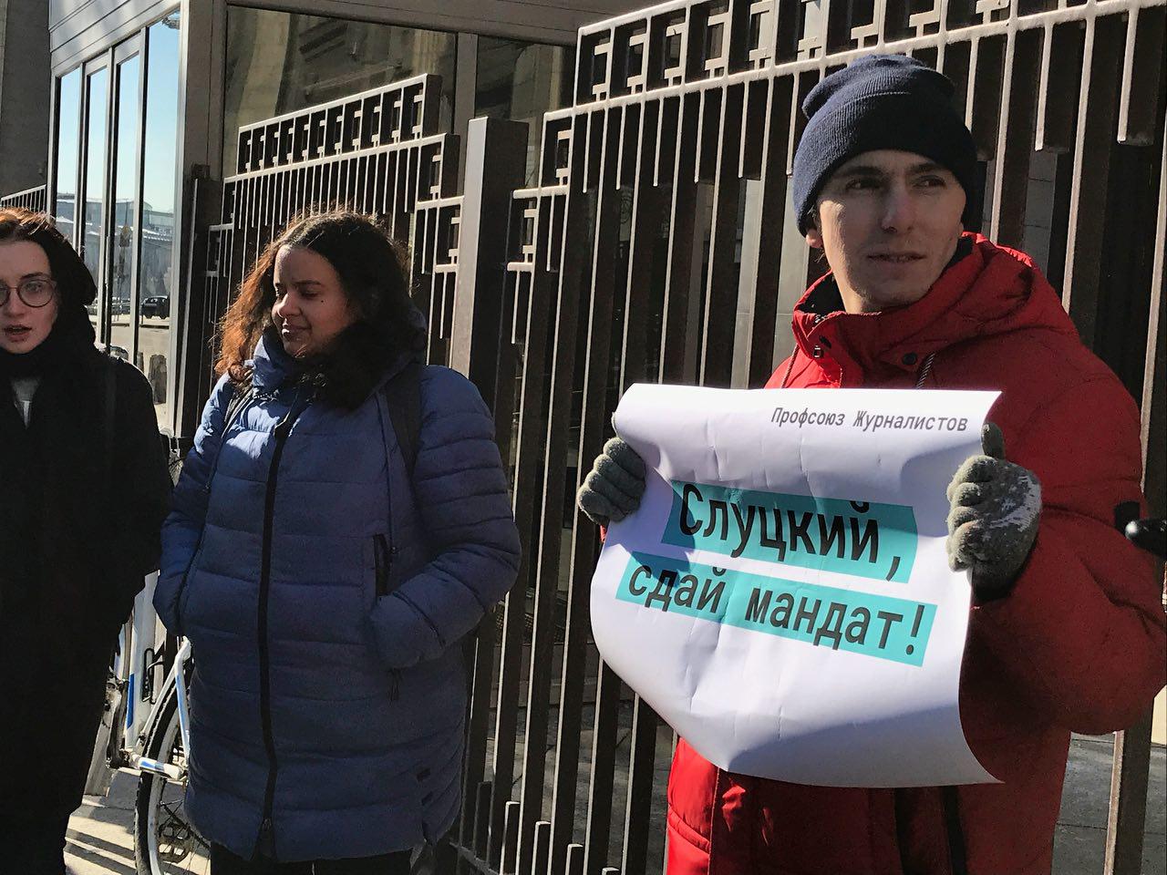 У стен Госдумы прошли одиночные пикеты против депутата Слуцкого