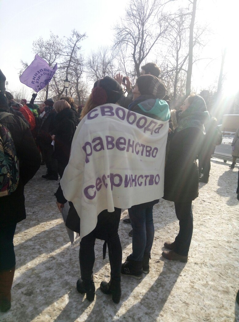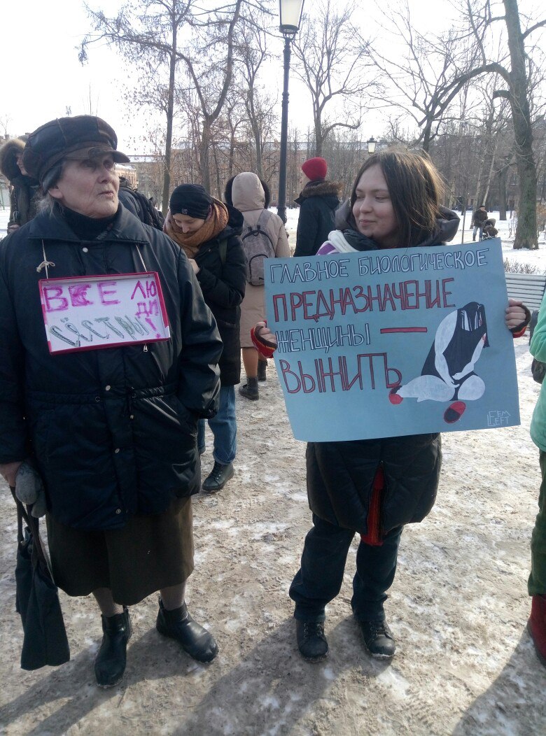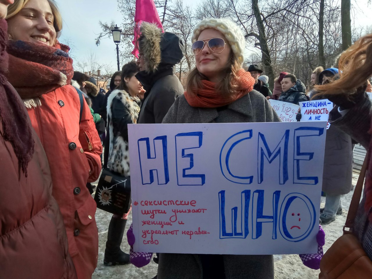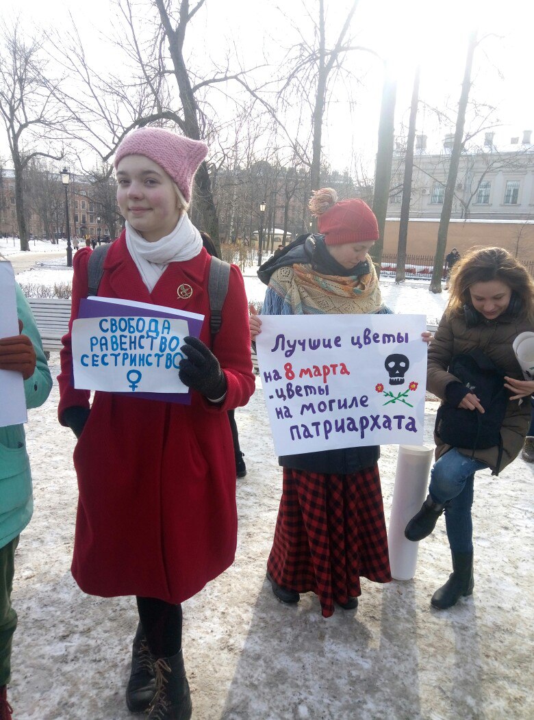 В четверг, 8 марта, в Овсянниковском саду в Петербурге прошел согласованный митинг «Я выбираю феминизм».