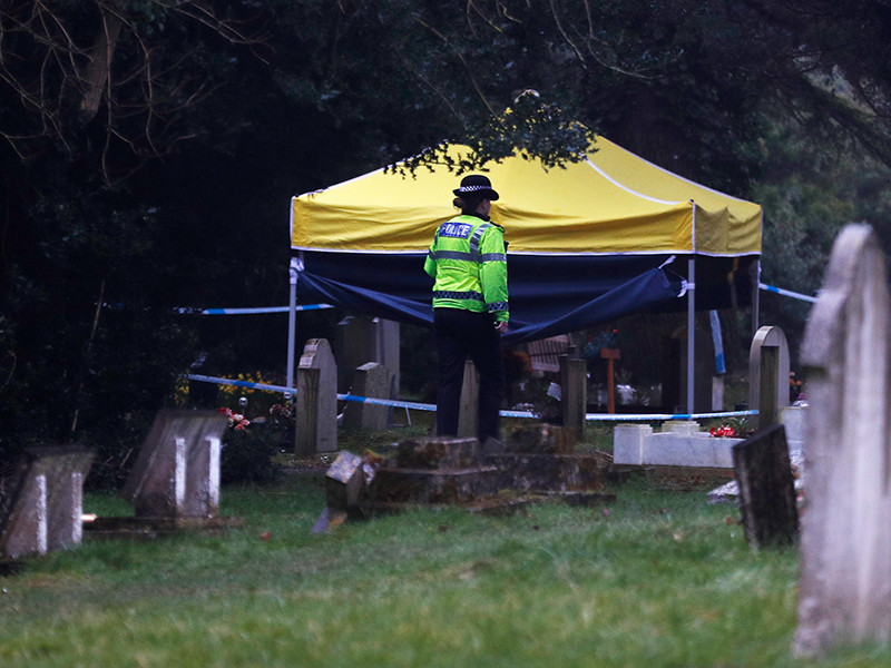 Британская полиция в костюмах спецзащиты нагрянула на кладбище, где похоронены жена и сын Скрипаля