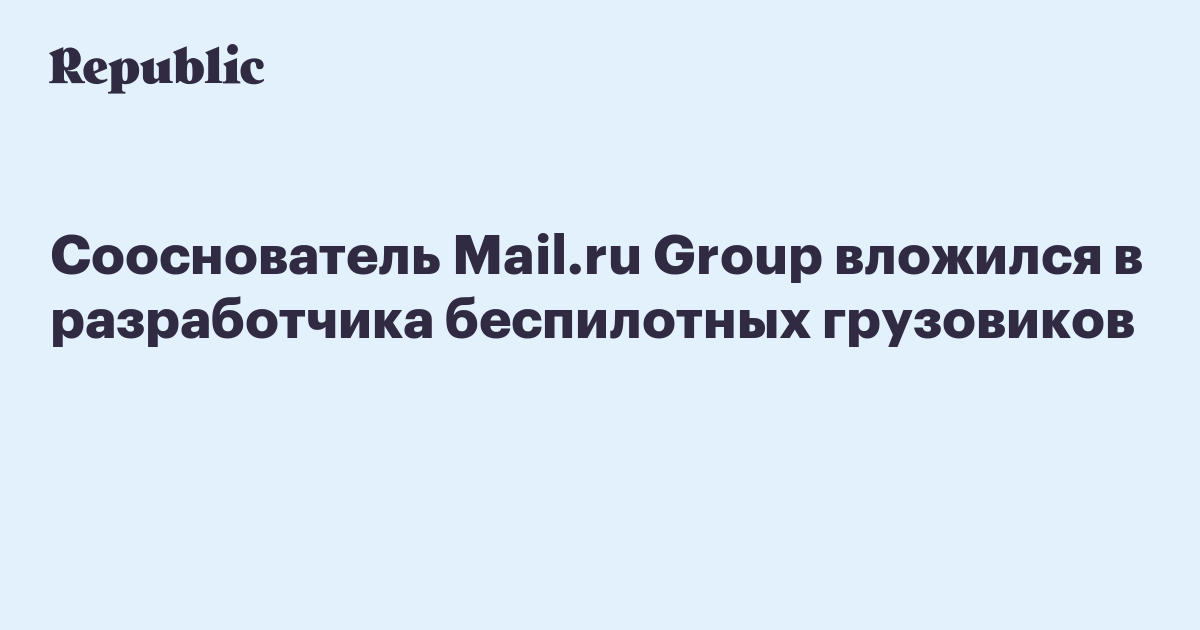 Сооснователь Mail.ru Group вложился в разработчика беспилотных грузовиков