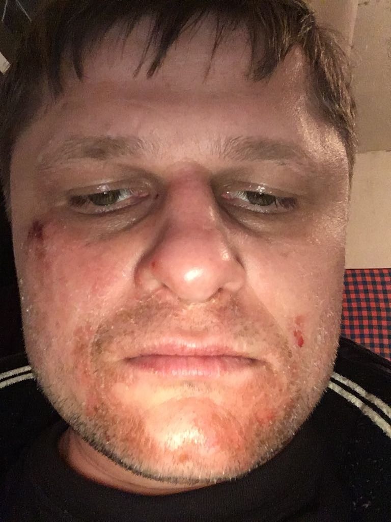 Так или иначе, обсуждение федерального закона «О полиции» тогда прервалось на фразе: «Ну все, пакуем», сразу после этого Габаев получил удар в челюсть. Удушающим приемом казак поставил новобрачного на колени, на Романа надели наручники и увели в опорный пункт полиции, расположенный неподалеку в парке.