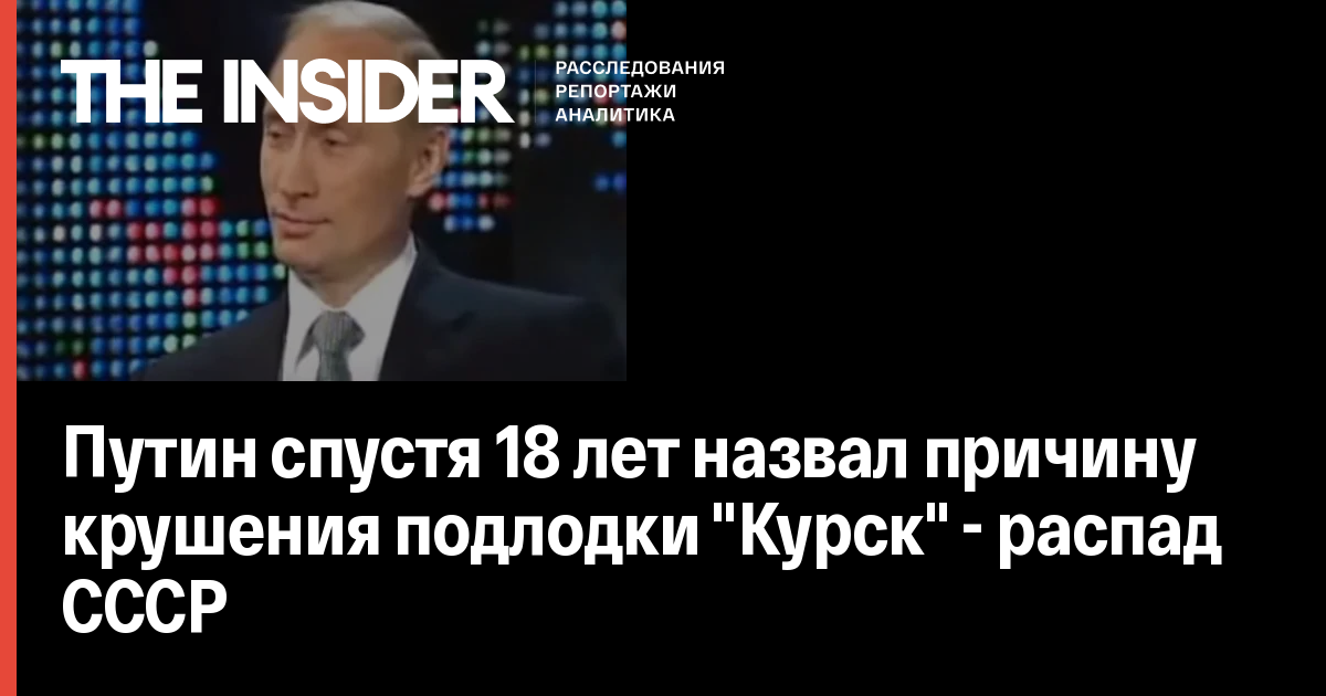 Атомная подлодка К-141 «Курск» потерпела крушение в августе 2000 года из-за плохого состояния российских вооруженных сил после распада СССР. Об этом президент Владимир Путин рассказал в документальном фильме журналиста Андрея Кондрашова, который опубликовал на своей странице в «Одноклассниках» телеведущий Дмитрий Киселев.