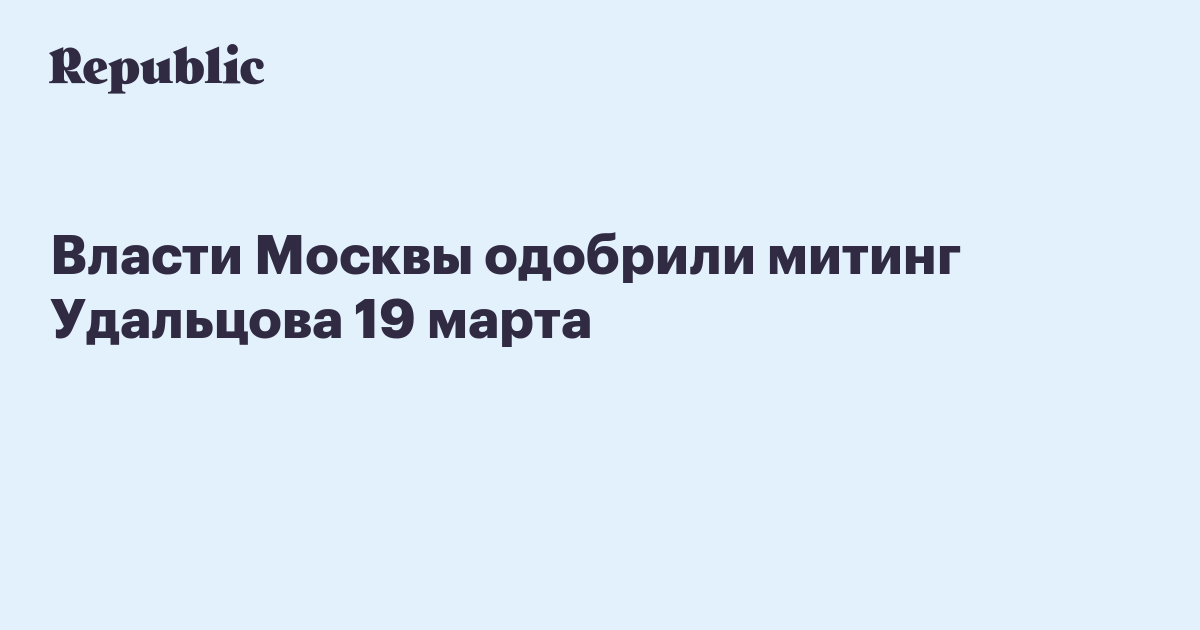 Мэрия Москвы одобрила митинг, посвященный обсуждению президентских выборов. Акция «Нам нужны честные выборы! Обсуждение итогов выборов Президента Российской Федерации» пройдет 19 марта, сообщил заявитель митинга, член «Левого фронта» Сергей Удальцов.