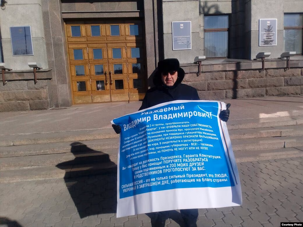 Житель Иркутска Шовкет Алекперов тоже не собирается никого выбирать 18 марта. Он говорит, что уже восемь лет пытается добиться справедливости от властей. По его словам, в 2010 году его дом и ресторан снесли, чтобы построить новый квартал "Иркутская слобода". Это был проект губернатора Иркутской области Дмитрия Мезенцева. Власти города предлагали ему землю в отдаленных районах города, но он отказался.