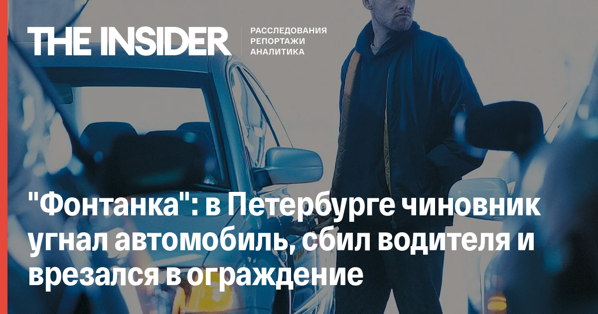 "Фонтанка": в Петербурге чиновник угнал автомобиль, сбил водителя и врезался в ограждение