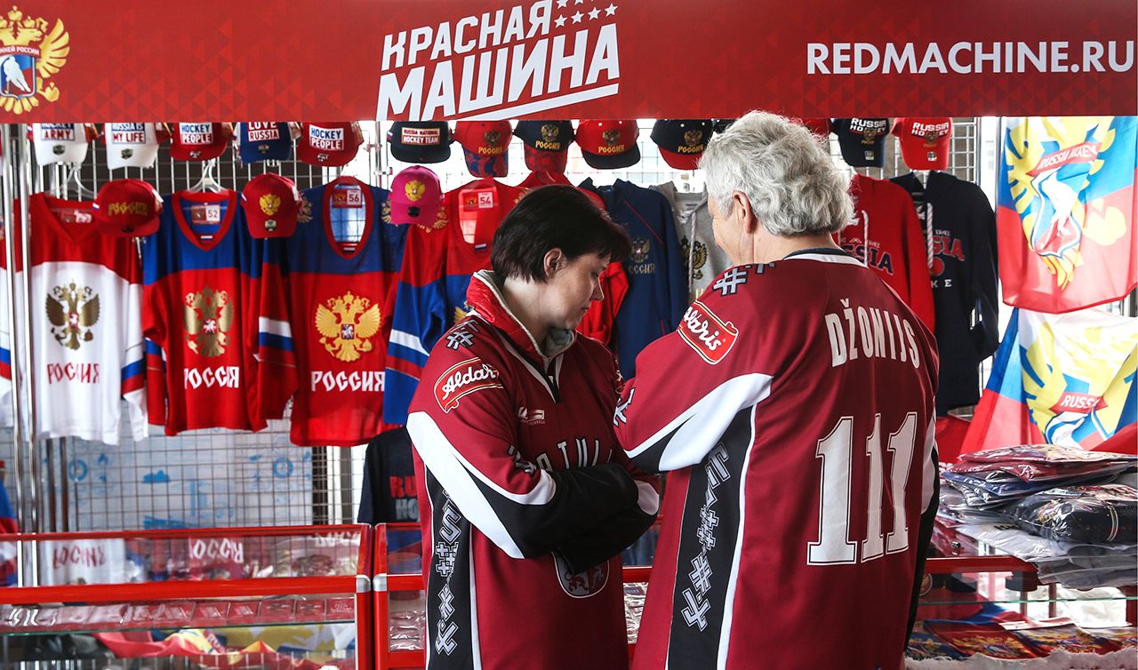 Толстовки, свитеры и бейсболки под брендом «Красная машина» можно купить не только во время матчей сборной России, но и в терминалах аэропорта Шереметьево, крупнейшем в Европе торговом центре «Авиапарк» на Ходынском поле в Москве, на Ленинградском вокзале. В Санкт-Петербурге официальных точек продаж еще больше. Магазины-партнеры есть в Магнитогорске, Сочи, Челябинске. Заказ можно сделать и через официальный сайт краснаямашина.рф — там продукцию рекламируют лучшие российские игроки: Александр Овечкин, Павел Дацюк, Илья Ковальчук, Семен Варламов.